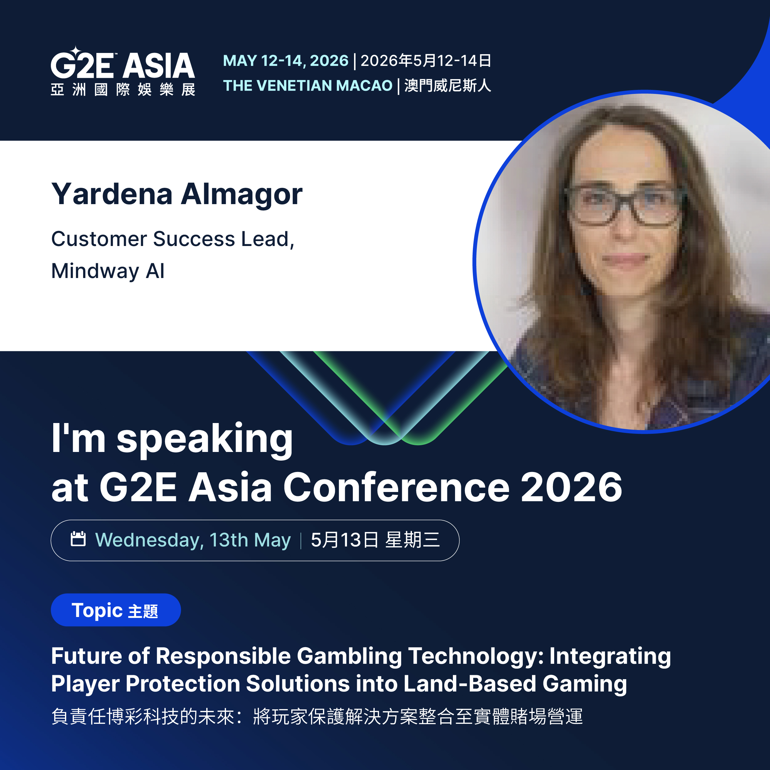 Yardena Almagor will be speaking at G2E Asia, 12 – May 14, 2026, Macao.